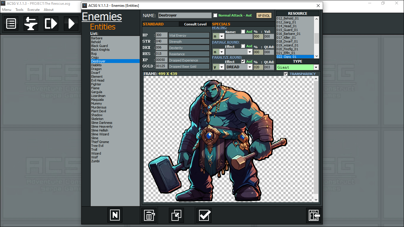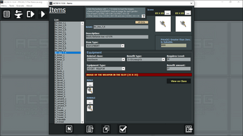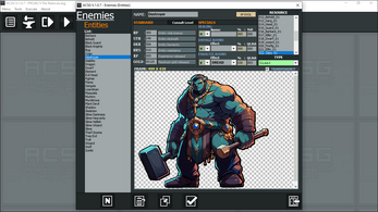 - Ready-made and Comprehensive Resources: Start creating quickly with a wide range of free resources, available for personal and commercial use. ACSG offers comprehensive control over all aspects of your project, with databases for items, sprites, classes, skills, enemies, audio, and more. Additional tools facilitate the creation of animations, working with images, and other visual resources.